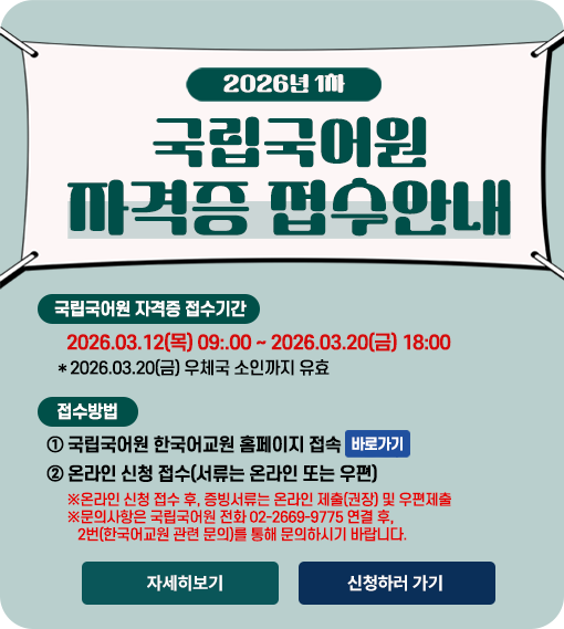 - - 2026년 3월 4일 개강반 외국어로서의 한국어교육실습 토요일반 수강 안내 (수강신청 전.. 2026-01-05