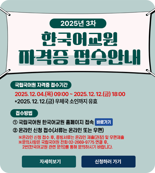 - - 【공지】 2025년 3차 한국어교원 자격 신청 안내 2025-11-04