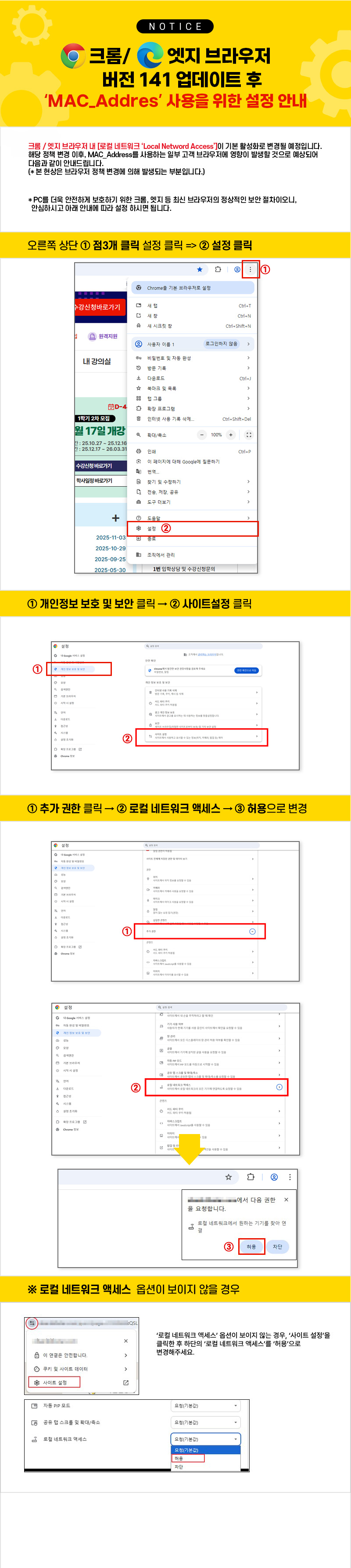 【공지】 크롬 및 엣지 브라우저 버전 141 업데이트 후 설정 변경 안내